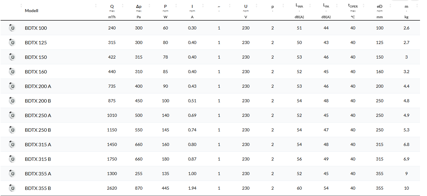 BDTX Zentrifugale Inline-Kanalventilatoren, rückwärts gekrümmt Gerätekomponenten und Materialeigenschaften Das Gehäuse und der Lüfter sind aus hochwertigem verzinktem Blech gefertigt, das gegen Korrosion gepresst ist. Alle Modelle haben einen Außenläufermotor mit geschlossener Bauweise und Lufttransport bei max. 40ºC. Auf Wunsch kann der Motor thermisch hochtemperaturgeschützt ausgeführt werden. Der Klemmenkasten und die Befestigungsbeine werden standardmäßig mit dem […]